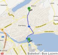 Bahnhof Richtung Maihof, Bus Perron 2, mit Trolley-Bus 1 in 6 Minuten, oder Bus 22